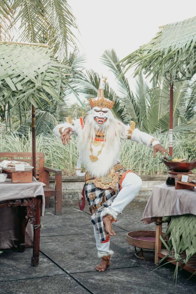 Initially a charming presence for photographs, the Hanoman joined the final yoga sequences in full costume. Seeing the divine warrior-monkey flow through the poses with mischievous grace was the ultimate catalyst for the guests’ amusement, shattering any remaining vestiges of self-consciousness through the shared language of laughter.